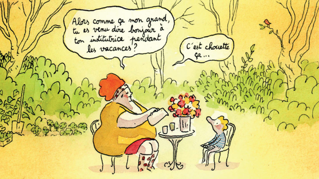 Ensuite, après un échauffement permettant aux enfants de goûter au jeu théâtral, nous nous plongeons dans une autre BD, très courte, et cherchons ensemble comment nous pourrions en faire un spectacle.
